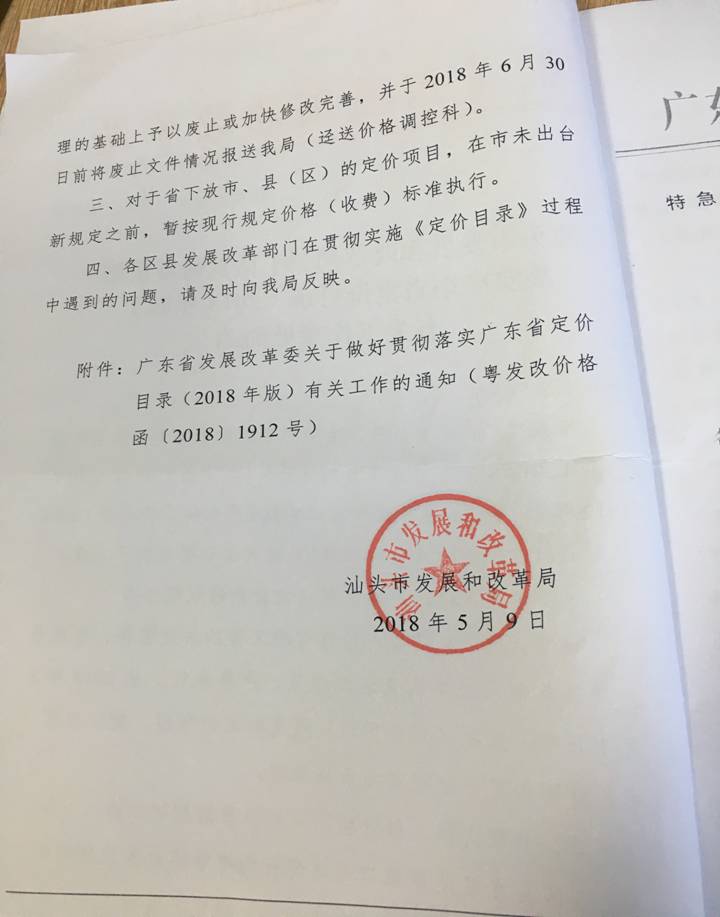 粵發(fā)改價格函〔2018〕1912號