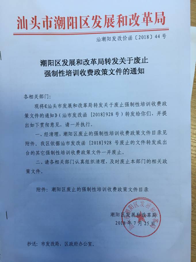 轉(zhuǎn)發(fā)關(guān)于廢止強(qiáng)制性培訓(xùn)收費(fèi)政策文件的通知
