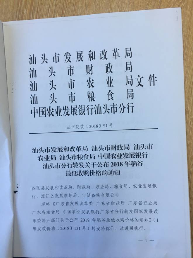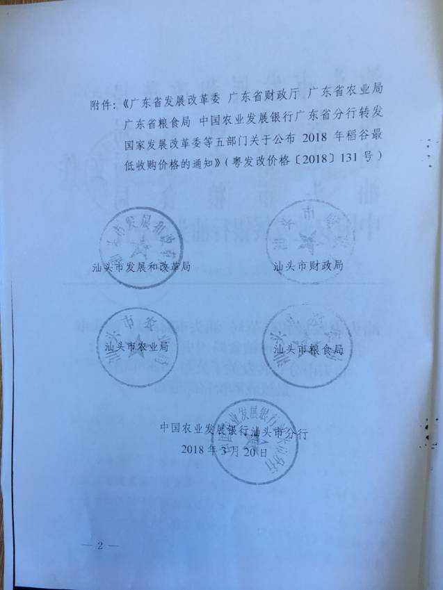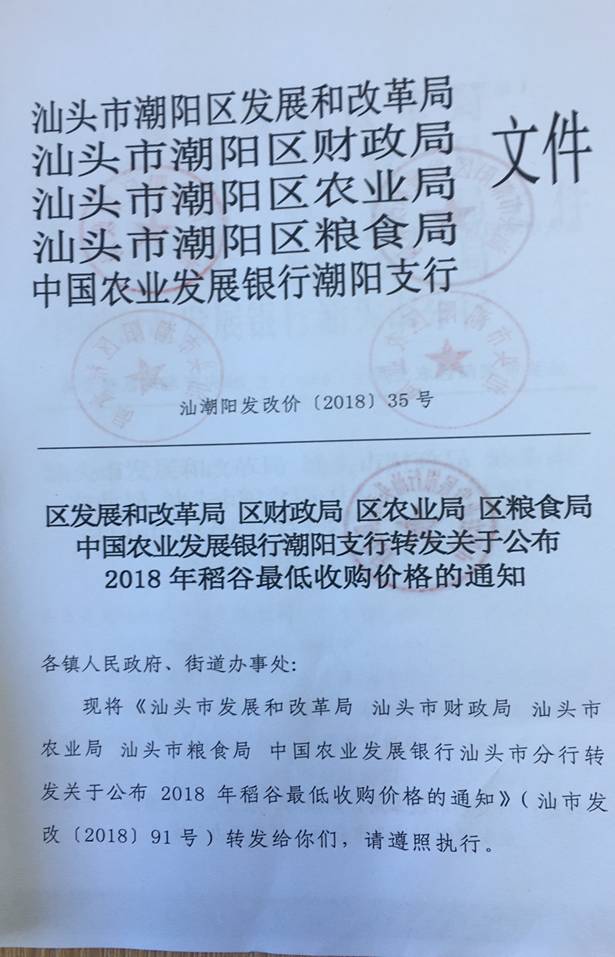 2018年稻谷最低收購價格的通知