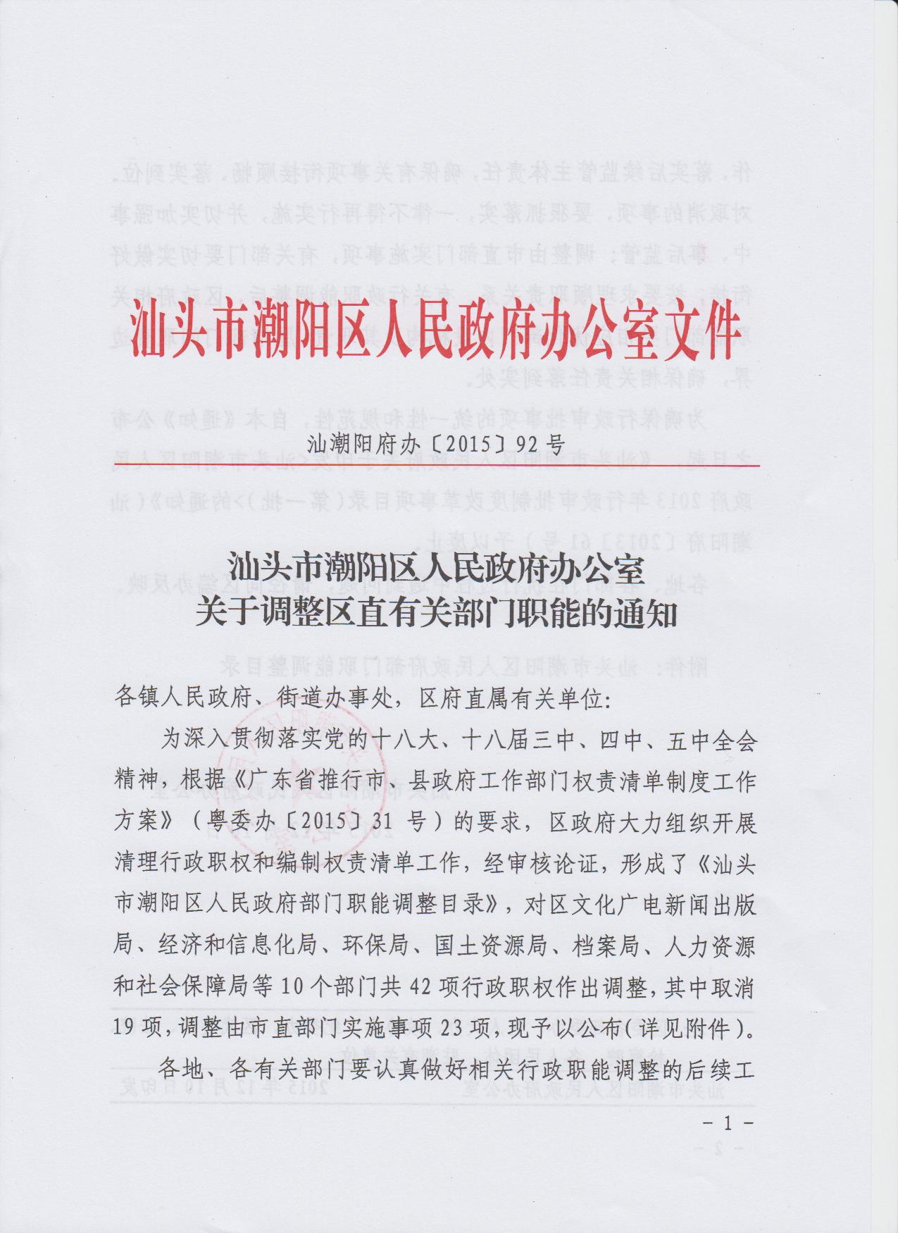 汕頭市潮陽(yáng)區(qū)人民政府部門職能調(diào)整目錄.xls